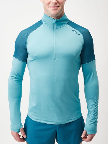 Designed for optimal movement and warmth, the 2XU Light Speed 1/2 Zip is ready for your cool-weather runs. Made with 3 lightweight fabrics keep you dry, cool, and has ability for maximum flexibility. The quick-drying main fabric is moisture-wicking while the back mesh panel allows for airflow, and the ribbed raglan sleeves provide movement proficiency. The 1/2 zip allows for easy on and off plus heat regulation as you run, and the stand collar and thumbholes give you a little extra coverage to help keep you warm when the temperature drops.